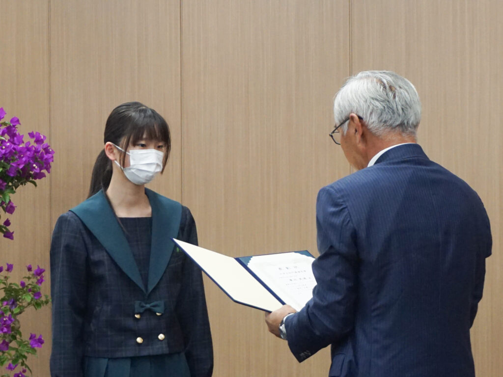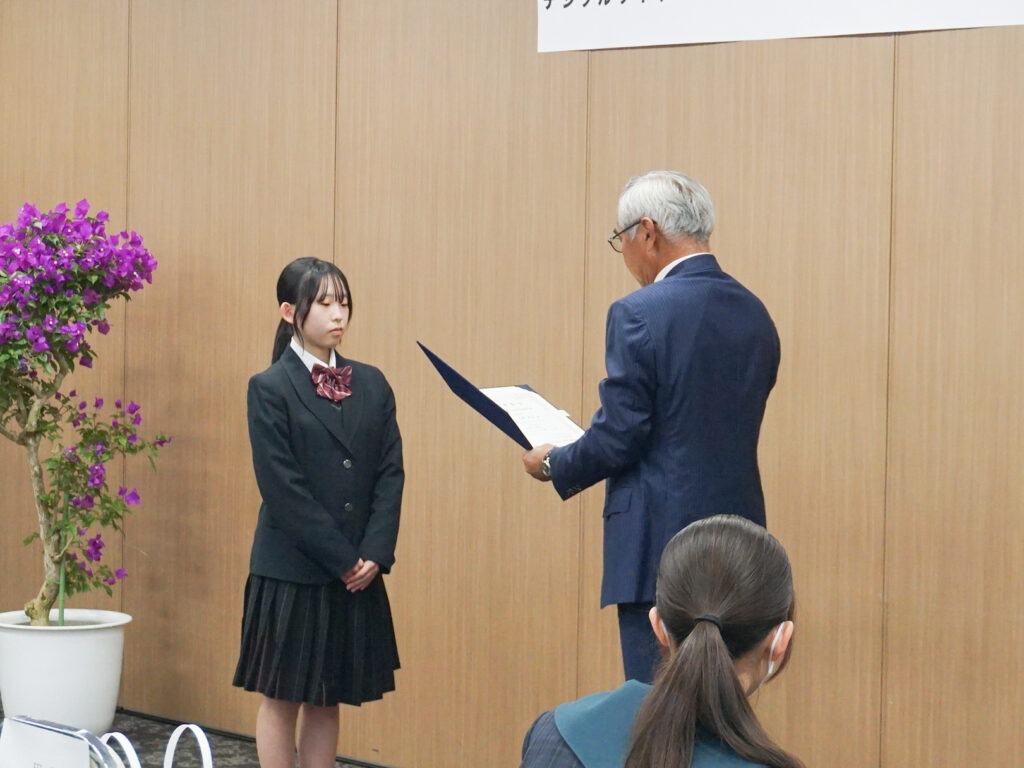 つづいて入選者、中学生部門最優秀賞、高校生部門最優秀賞、優秀賞(ケイメイ賞)、優秀賞(日之影町賞)、優秀賞(KSOL賞)、最優秀賞の順で表彰状の授与を行いました。